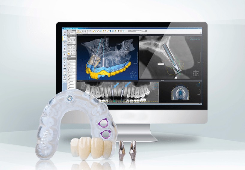 Per svolgere questo tipo di intervento ci si avvale dell’utilizzo di un sofisticato software che, simulando la posizione in cui verrà inserito l’impianto, garantisce un’ottima pianificazione protesica e un corretto posizionamento dell’impianto stesso.